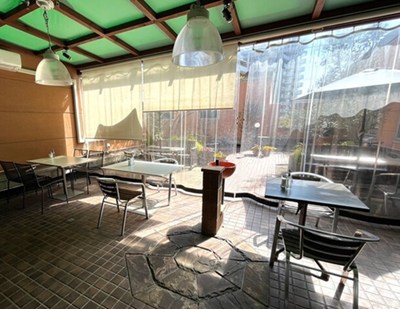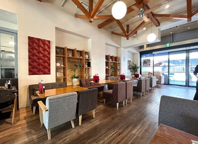 店内にはおしゃれなソファ席やテーブル席があり、店奥にはワンちゃんの同伴もOKのテラス席もあります。