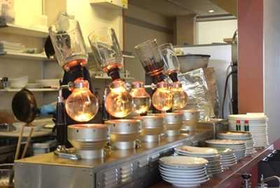常時10種類前後ある自社焙煎のコーヒー豆は、すべてサイフォンで抽出。