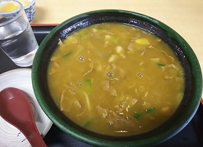 そば以外の人気メニュー「カレーうどん」は、出汁がおいしいと好評です。