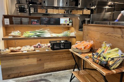 阪急「神戸三宮駅」の西改札を出ると正面にある、地元神戸の野菜を取り扱うファーマーズカフェ「神戸ニューワールド」。
