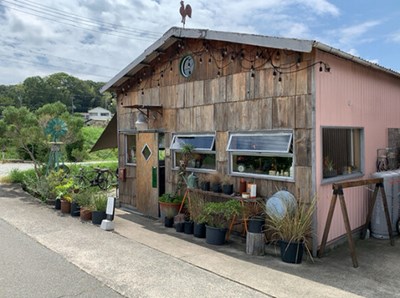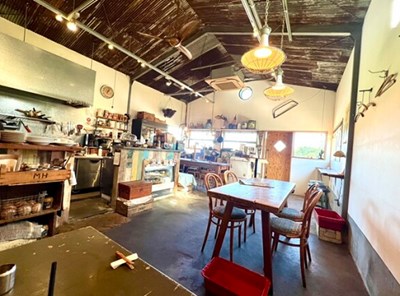田園風景の中に佇むトタン造りの外観で、店内はヴィンテージ感漂う空間です。