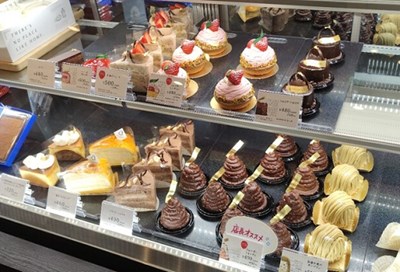 レンガ造りのおしゃれな外観で、生菓子や焼き菓子のほかにショコラやギフト商品など豊富な種類の洋菓子が店内に並びます。