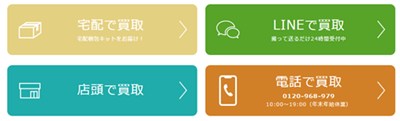 買取方法:店頭買取・宅配買取・出張買取・ライン査定