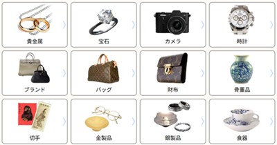 ブランド品や貴金属の他にもジュエリー類・切手や金券・骨とう品・家電なども買取可能。