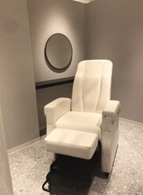 白でまとめられた清潔感のある雰囲気で、半個室のリクライニングチェアで施術を行うので、リラックスしながら気軽に相談ができます。