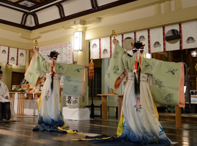 「新春初太鼓・初神楽」では、年が明けると新年を告げる初太鼓がたたかれ、一年の招福を願って初神楽が奉納されます。