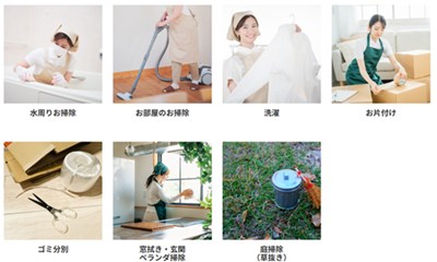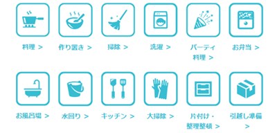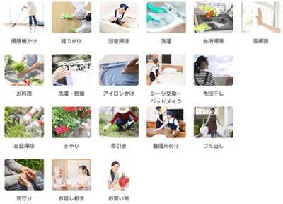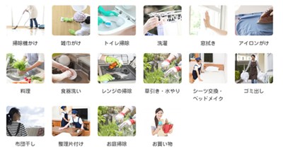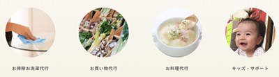 お願いできる家事は、掃除・料理・整理収納・洗濯・ペットのケア・ベビーシッターです。