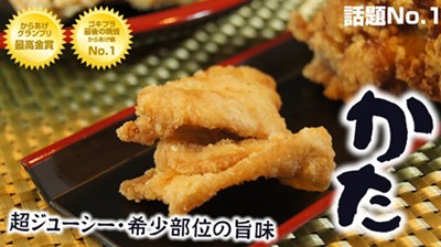 かた肉は鶏一羽から50gほどしか取れず、流通しにくいところから希少部位とよばれ、胸肉のしっとり感とモモ肉のジューシー感の両方を併せ持った部位です。