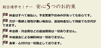 講師と子供との相性・雰囲気・指導方針・学参のシステムに納得できた場合のみの入会なので、勧誘もなく安心して利用できます。
