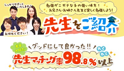 国公立大学在学中の学生を中心に5万人以上の経験豊富な教師とやる気と熱意あふれる先生たちが在籍していて、勉強が好きになれるように多くの子供たちをサポートしています。