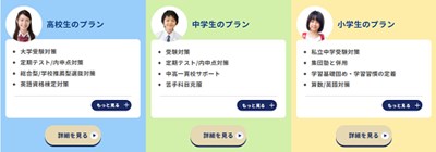 小学生から高校生まで幅広い年齢に対応していて、学校の定期テストフォローや受験対策・苦手科目克服などの要望に対応します。