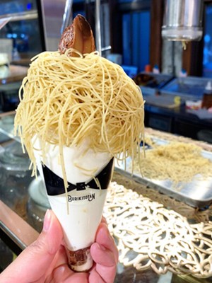 注文後に絞ってもらえる「生絞りモンブランソフト」や焼き芋ペースト、大学芋・芋チップスがトッピングされた芋づくしの「芋ソフト」などが人気。