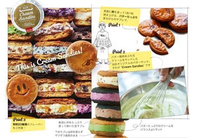看板商品の「クリームサンディーズ」は、フレーバー違いのバタークリームをサンドしたサクサクのバターたっぷりクッキー。