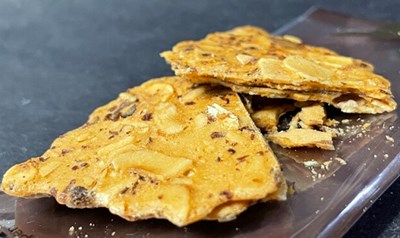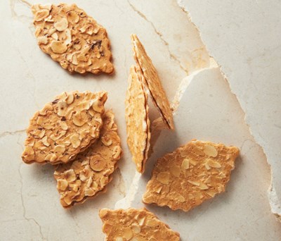 スライスナッツを敷き詰めてパリッと香ばしく焼き上げたクッキーに、バランスよくチョコレートがサンドされています。