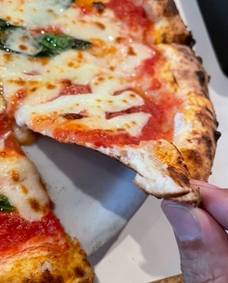 ふかふかのピザ生地が特徴で、釜焼きのスモーキーな風味やトマトソースの旨味酸味が絶妙なバランスと評判。
