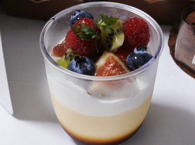 プリン自体はあっさりしていていますが、ボリューム満点のフルーツの酸味と甘みによく合っていて軽くて優しい味わいです。