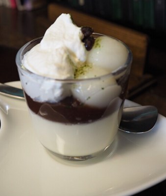 また豆乳プディングも人気があり、白玉・生クリーム・粒あん・豆乳プリンの層になっていて、トロトロの食感がたまらない一品です。