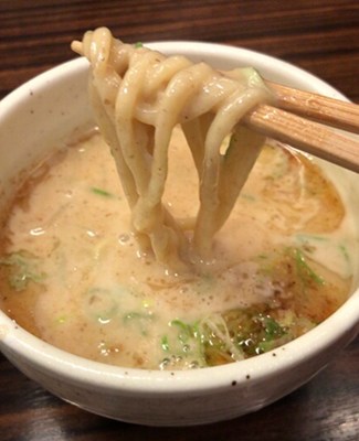 特濃スープが麺にしっかり絡むので、味が一体化していてハマる人続出の美味しさです。