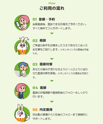 登録は全てホームページから行い、その後専門職に特化したコンサルタントによる面談・求人紹介が行われます。