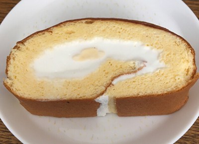 あっさりフワフワの生クリームがたっぷりのシンプルなロールケーキ。