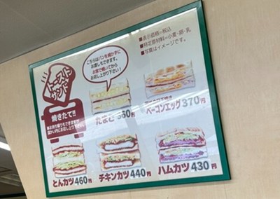 トーストサンドの具材は、とんカツ・ハムカツ・たまごなど5種類。