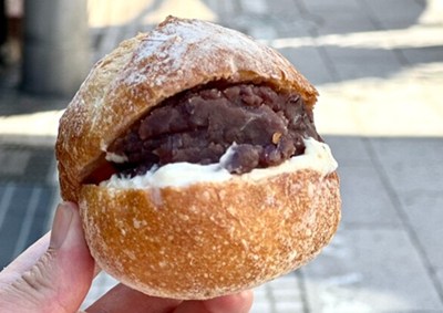 ハード系のもっちりとしたパンに、たっぷりのあんことミルクの風味が詰まった北海道バターがサンドされた「北海道バターと大納言」も人気。