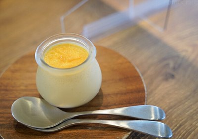 濃厚でなめらかな自家製ハチミツプリンが、食後のデザートにピッタリ。