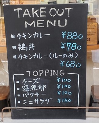 チキンカレー・鶏丼・キーマカレーなどのテイクアウトも可能です。