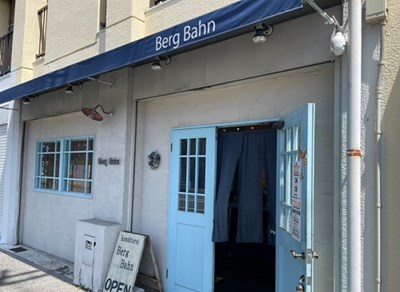 パステルブルーの大きな扉が目印で、パステルブルーを基調とした店内は明るく可愛い雰囲気です。
