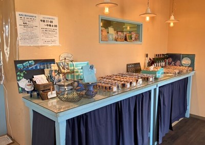 菓子の製造工場に併設されている直売所は、明るく親しみやすい雰囲気です。