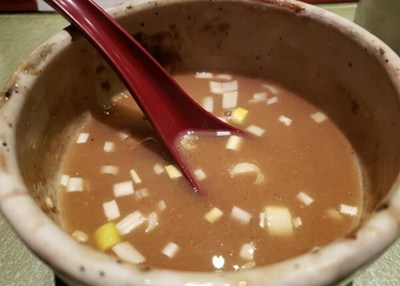 クリーミーな鶏白湯魚介つけ汁「麺・ヒキュウ」