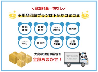 高価買取や雑貨の無料回収で費用を抑えられます。