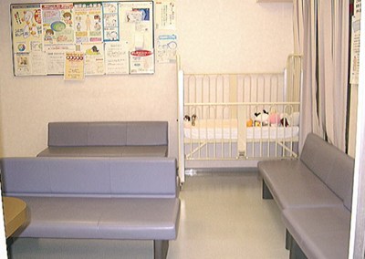 広い開放的な待合室には小児科ならではの配慮でベビーベッドが置かれていて、子供連れの方に優しい内装になっています。