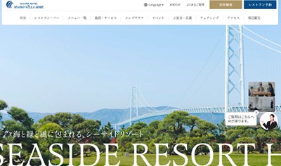 JR舞子駅・山陽電鉄舞子公園駅・霞ヶ丘駅より徒歩約7分のところにある「シーサイドホテル舞子ビラ神戸」。