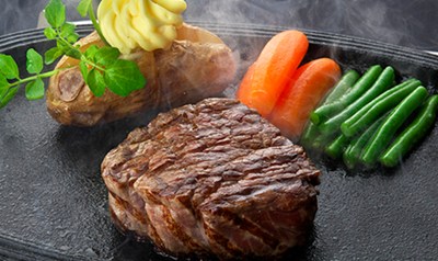 テーブルの上の炭火を使って自分で焼く炭火焼きステーキは、厳選されたお肉をリーズナブルにいただけると人気。