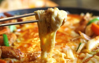 本場韓国で人気が高いチーズタッカルビは、甘辛鶏肉・野菜・トッポギをトロトロのチーズに絡めるともう絶品。