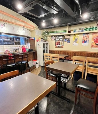 店内は昔ながらの居酒屋のような雰囲気で、テーブル席とカウンター席があります。