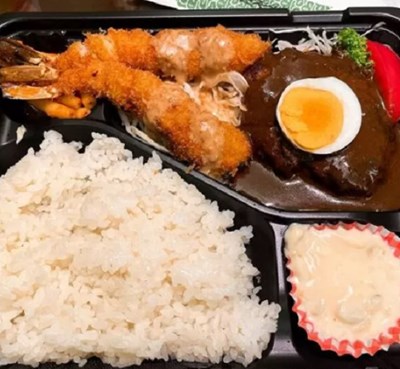 ハンバーグとエビフライのボリューム満点のセット弁当もあり、店内で食べれないときやお出かけの時にもおすすめです。