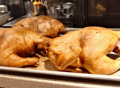 看板メニューの「焼鶏(しょうけい)」は、新鮮な若鶏を丸1日スパイスにつけて高温の油で揚げて蒸したもの。