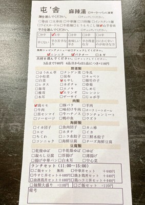 辛さの調節や麺の種類などお好みをオーダーシートに記入して注文します。