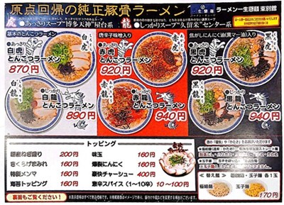 博多豚骨ラーメンのチェーン店『虎と龍』、また同じ深江浜にある『一生懸麺』の同系列店。