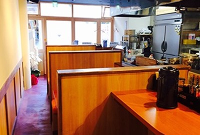 深江浜の東部卸売市場の中にあり、キッチンと逆Lのカウンターのみとこじんまりしたアットホームな雰囲気です。