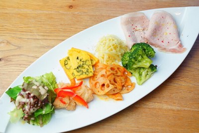 人気の「淡路鶏と野菜のハンバーグ」は、トマトソース・モッツァレラチーズ・温泉卵と一緒にオーブン焼きした肉汁たっぷりの自家製ハンバーグ。