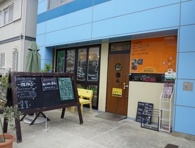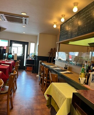 鮮やかなブルーの建物一階部分で、店内はアットホームで優しい雰囲気です。