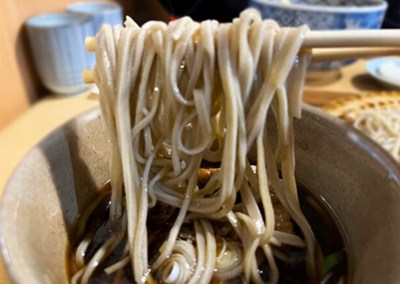 自慢の小麦粉不使用の十割そばは、しっかりと弾力もあり切れることなく長くつながっていて、江戸味の美味しいおつゆとの相性は抜群です。