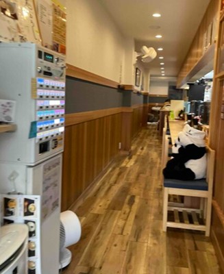 入口の券売機で食券購入し、明るい雰囲気のカウンター席とテーブル席が揃った店内でいただきます。