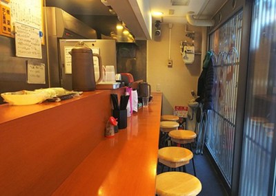そばうどんと書かれた和風の暖簾が目印で、カウンター席中心の明るい店内は、アットホームな雰囲気です。