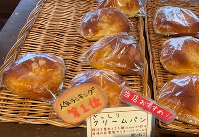人気のクリームパンは、自家製のカスタードクリームがぎっしり。