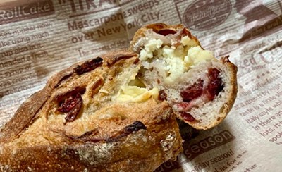 人気の「クランベリーとクリームチーズ」は、たっぷりのクランベリーが入ったモッチリとした食感のフランス生地で、クリームチーズを包み込んでいます。
