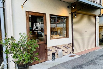 フクロウが描かれた扉が目印で、こじんまりとした店内はシンプルでおしゃれな空間です。